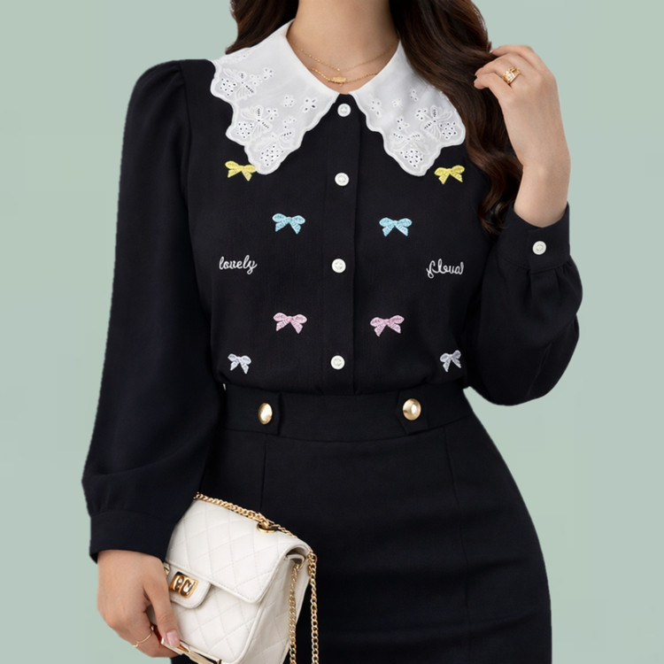 شومیز یقه خامه دوزی