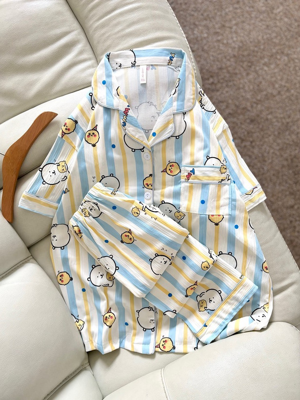 ست بلوز آستین کوتاه و شلوار نخ موسلین